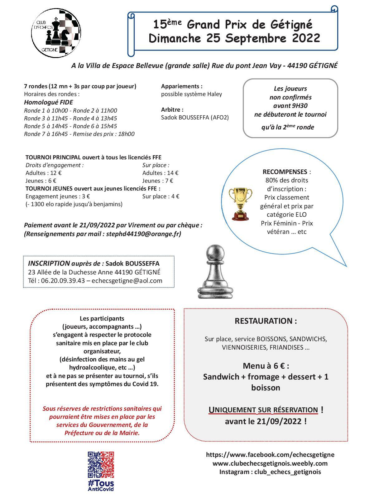 Club affilié à la Fédération Française des Echecs