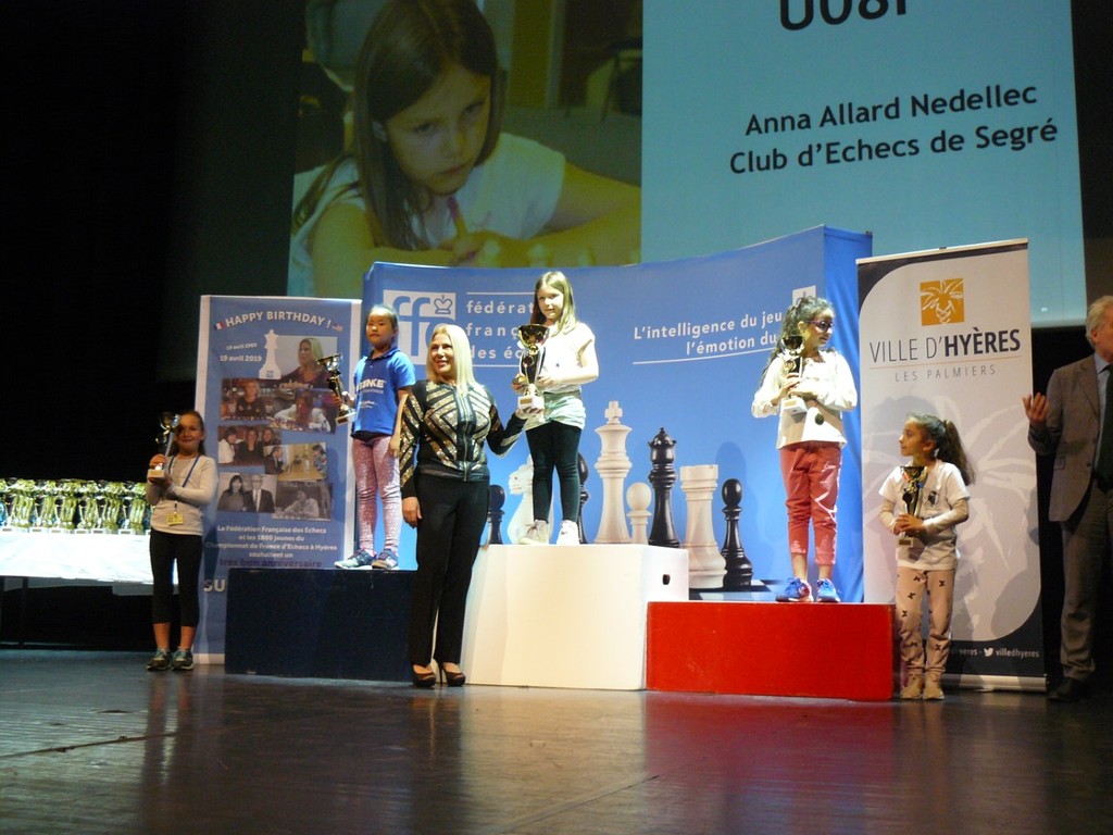C'est Suzan Polgar championne du monde féminin de 1996 à 1999 qui a remis le trophée à Anna.