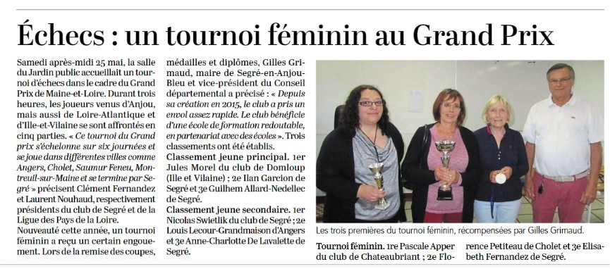 Un article du courrier de l'Ouest sur le tournoi féminin qui s'est déroulé ce samedi 25 mai à Segré.