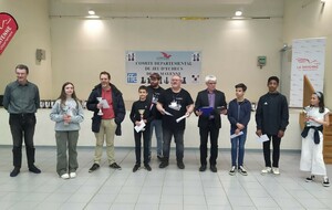 - dans l'Open A, Guilhem termine 5ème avec 4,5/6. Une seule défaite lors du tournoi, contre un GMI, bravo Guilhem!!!